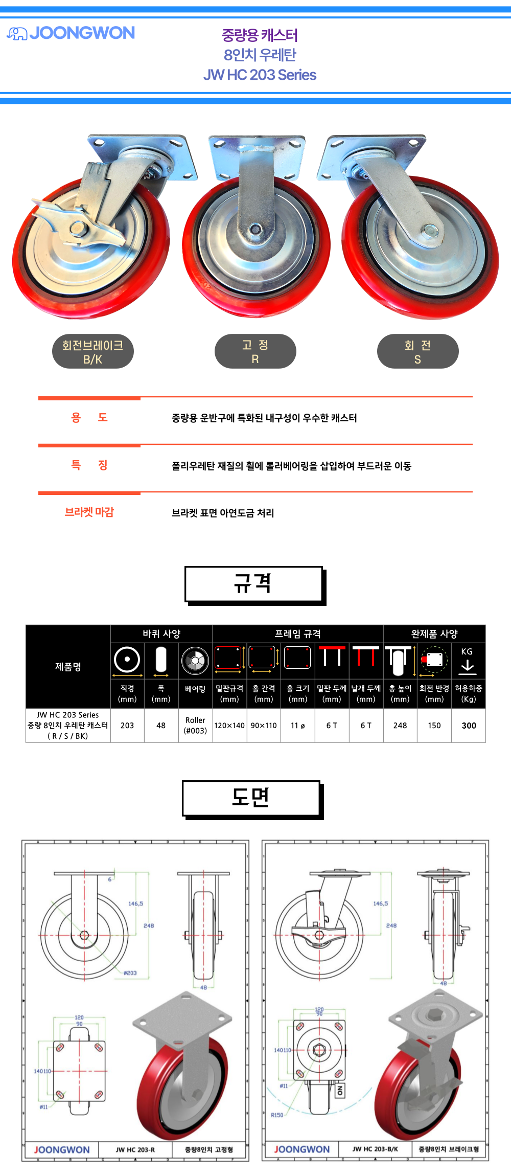 JW 중량용 8인치 캐스터