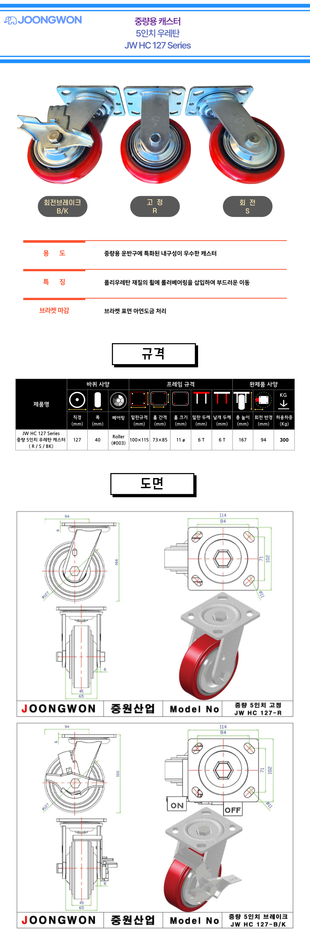 JW 중량용 5인치 캐스터