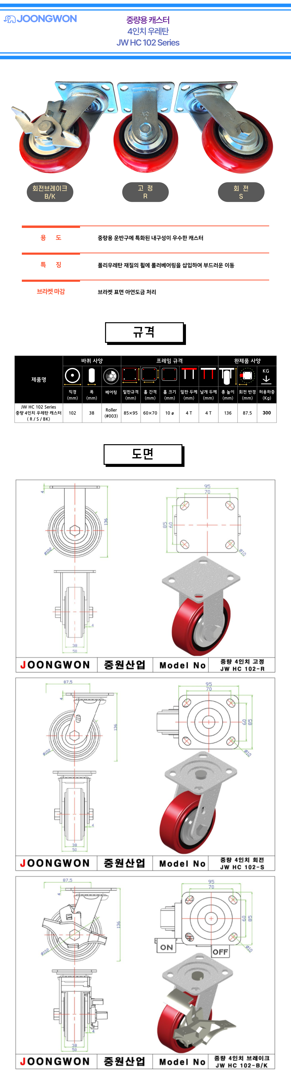 JW 중량용 4인치 캐스터