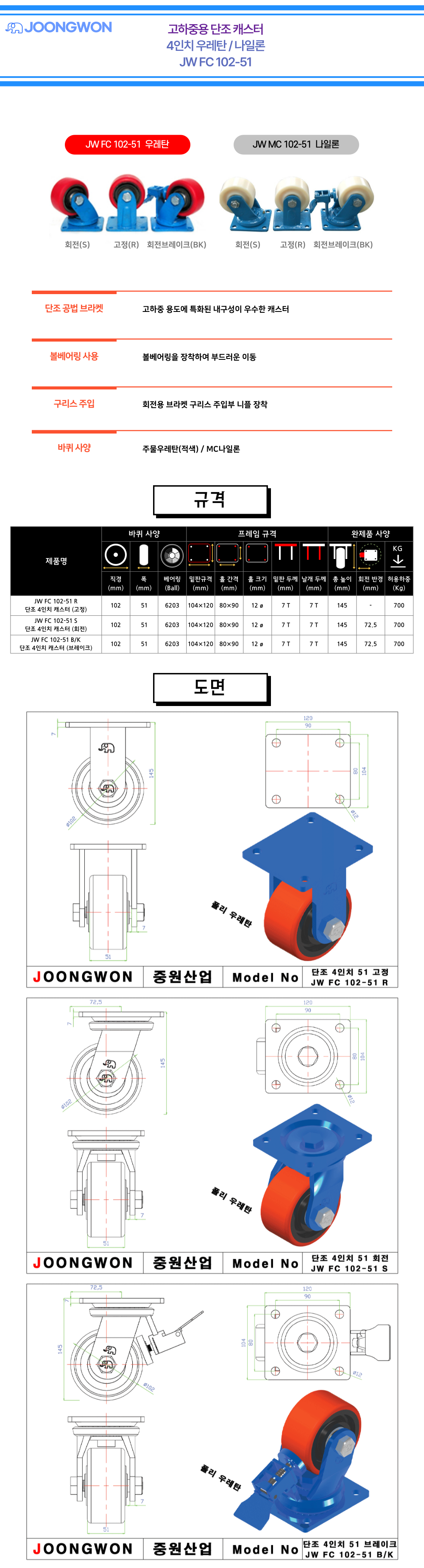 바퀴직경 102mm(4") 단조캐스터 시리즈