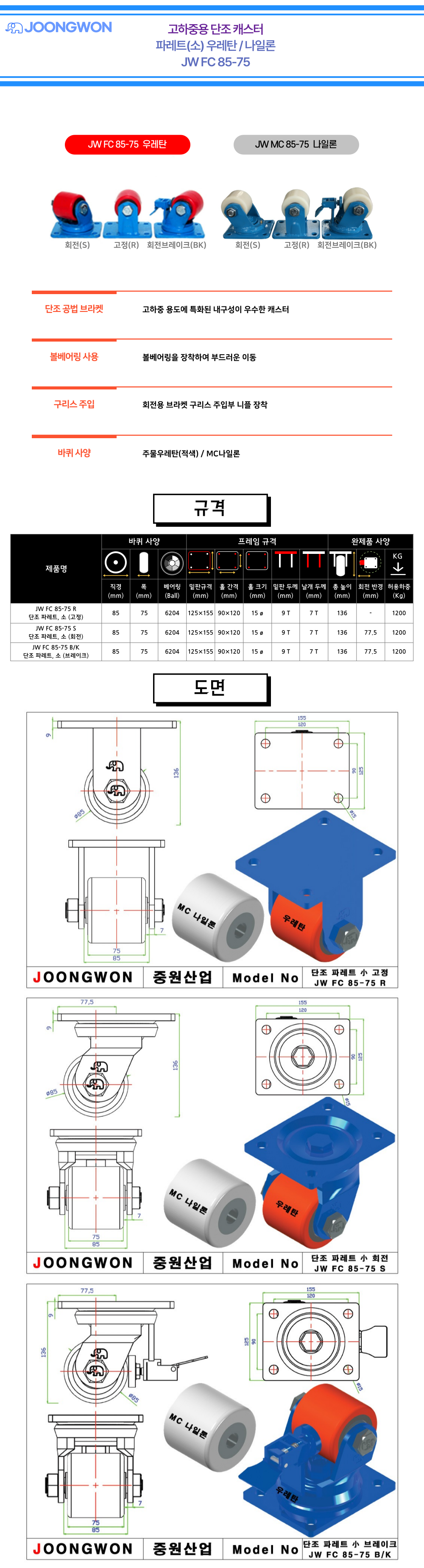 바퀴직경 85mm(Pallet) 단조캐스터 시리즈