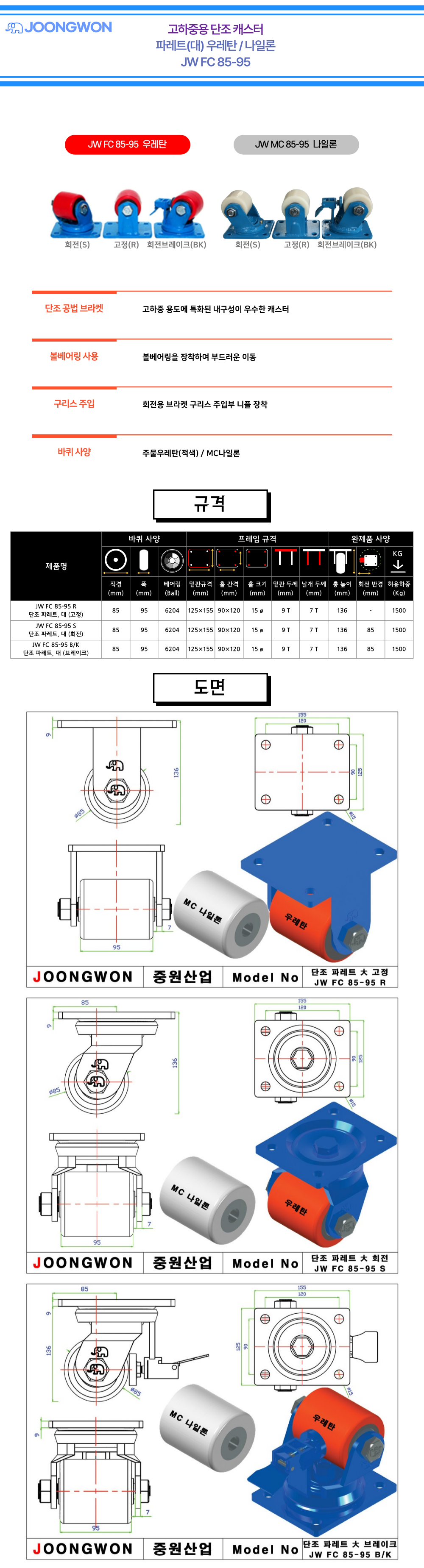 바퀴직경 85mm(Pallet) 단조캐스터 시리즈