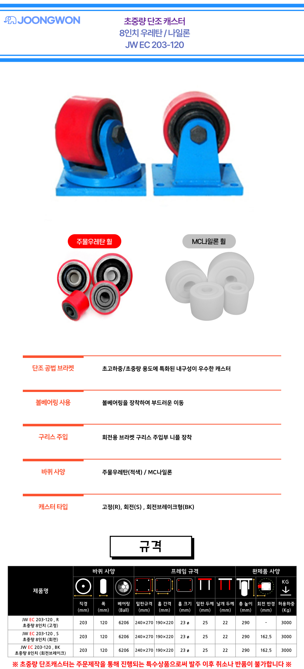 바퀴직경 203mm(8") 초중량 캐스터 시리즈